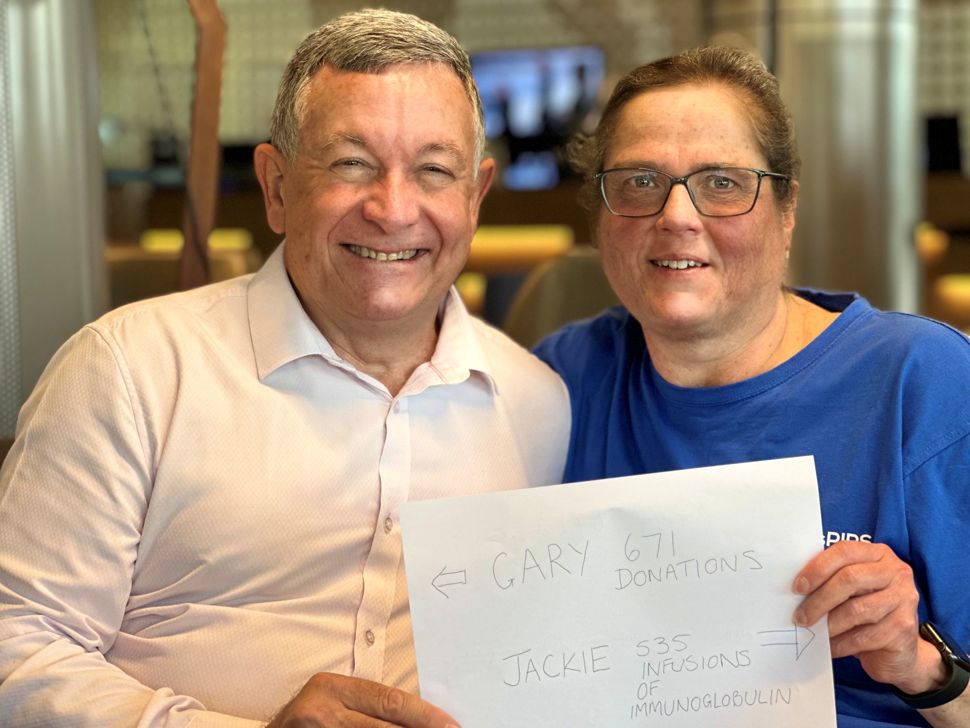 Immunoglobulin products are made by pooling plasma from donors like Gary, so that their antibodies can help protect those with primary immune deficiencies. Having donor and recipient together was an emotional and powerful illustration of the important of blood donors.